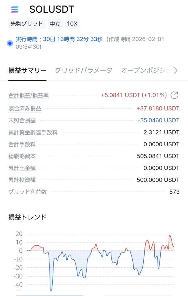 私は現在、BTCペアとSOLペアで先物グリッドを稼働中ですが、