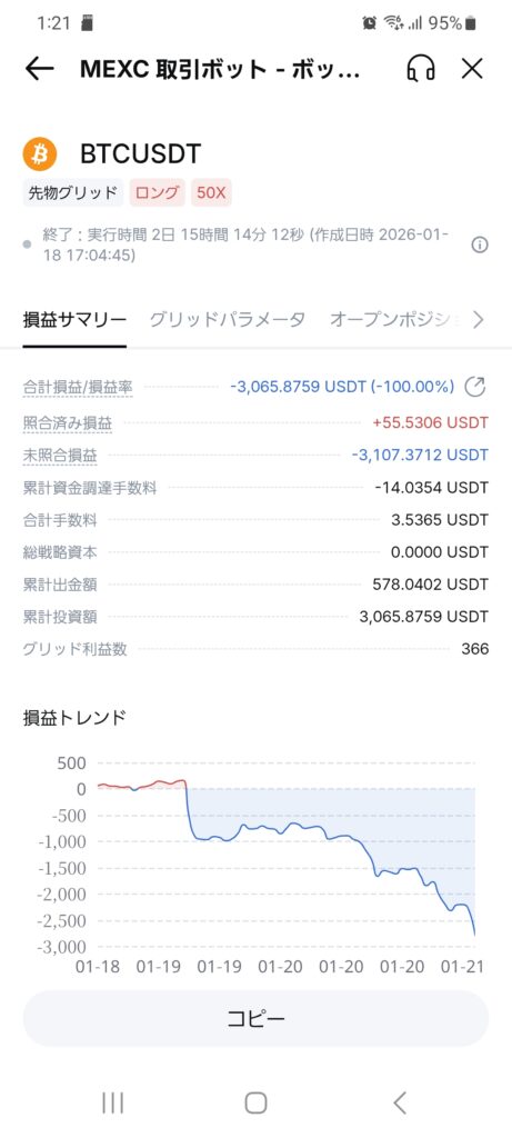 一方で、BTC50倍ロングで2回ロスカットも経験しました。