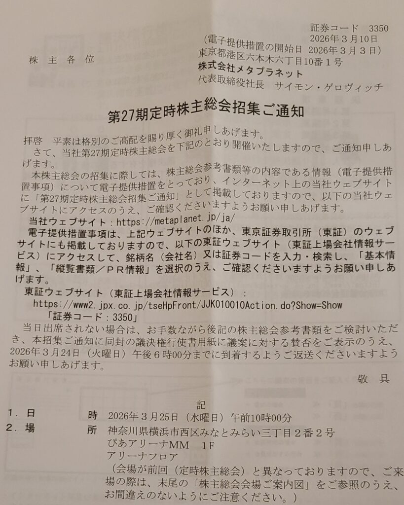 株主総会の案内が届きました。