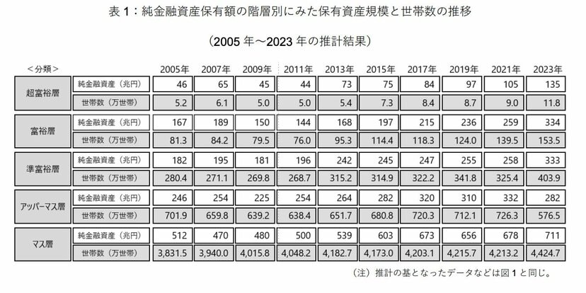 出所:株式会社野村総合研究所「純金融資産保有額の階層別にみた保有資産規模と世帯数」